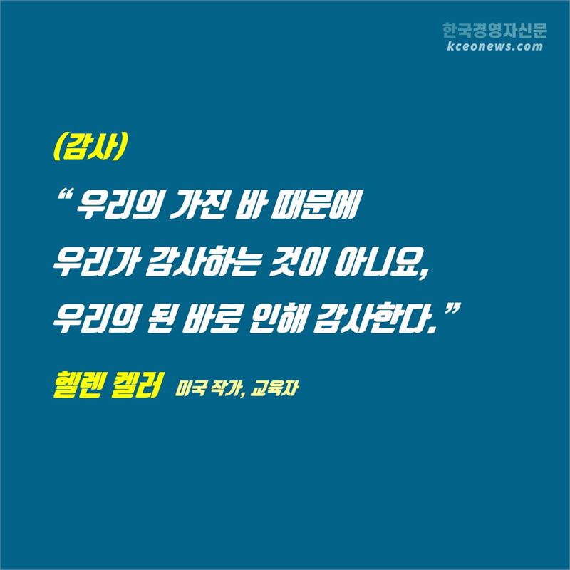 【편집자 주】 사업에 혜안을, 마음에는 힐링을! 명언과 함께 하루를 시작하세요. ‘오늘의 아포리즘’ 카드뉴스를 '창간기획 콘텐츠 9'의 하나로 매일 아침 배달합니다. 0 0 한국경영자신문 편집팀 kceonews@naver.com 편집팀의 기사 더보기 저작권자 ⓒ 한국경영자신문, 무단 전재 및 재배포 금지