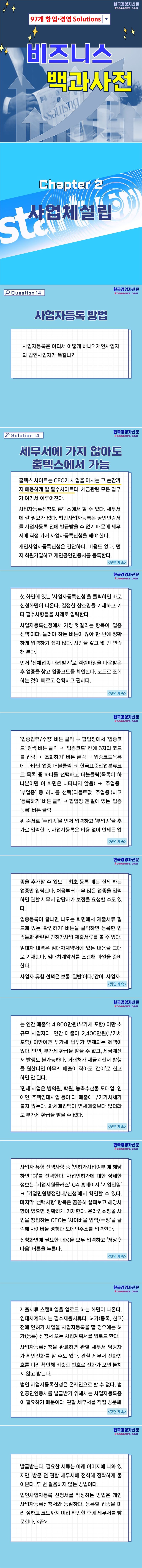 【편집자 주】 CEO는 사업구상부터 결산까지 비즈니스의 모든 과정에 대한 기본 지식과 정보를 꿰차고 있어야 합니다. CEO가 비즈니스 과정에서 맞닥뜨리는 핵심문제 97개를 선별해 그 솔루션을 제시하는 ‘찹쌀떡 비즈니스 백과사전’ 카드뉴스를 매주 목요일 연재합니다.