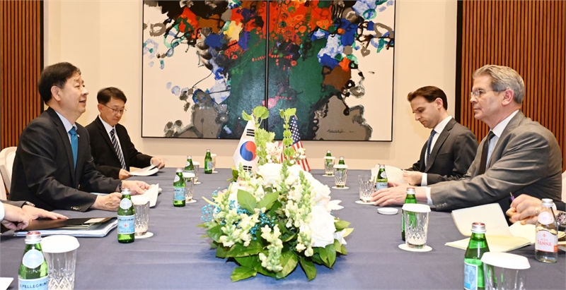 구윤철 부총리 겸 기획재정부 장관이 9월 24일(현지시간) 주유엔 대한민국대표부에서 스콧 베센트 미국 재무장관과 면담을 하고 있다. 기획재정부 제공